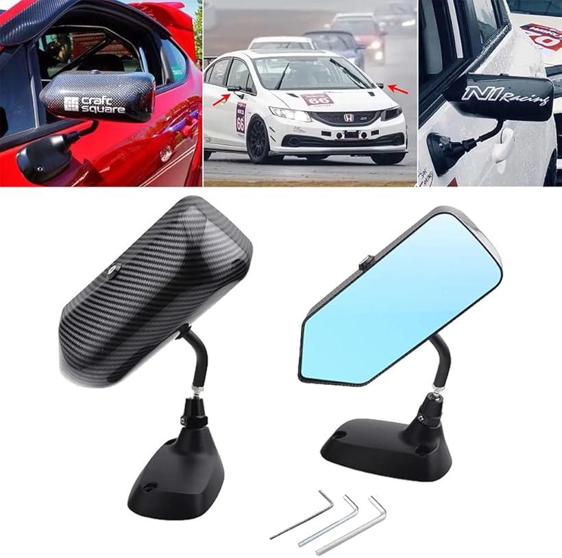 互換品レーシングミラー カーボン柄 ブルーレンズ サイドミラー ドアミラー 軽量 汎用 左右セット