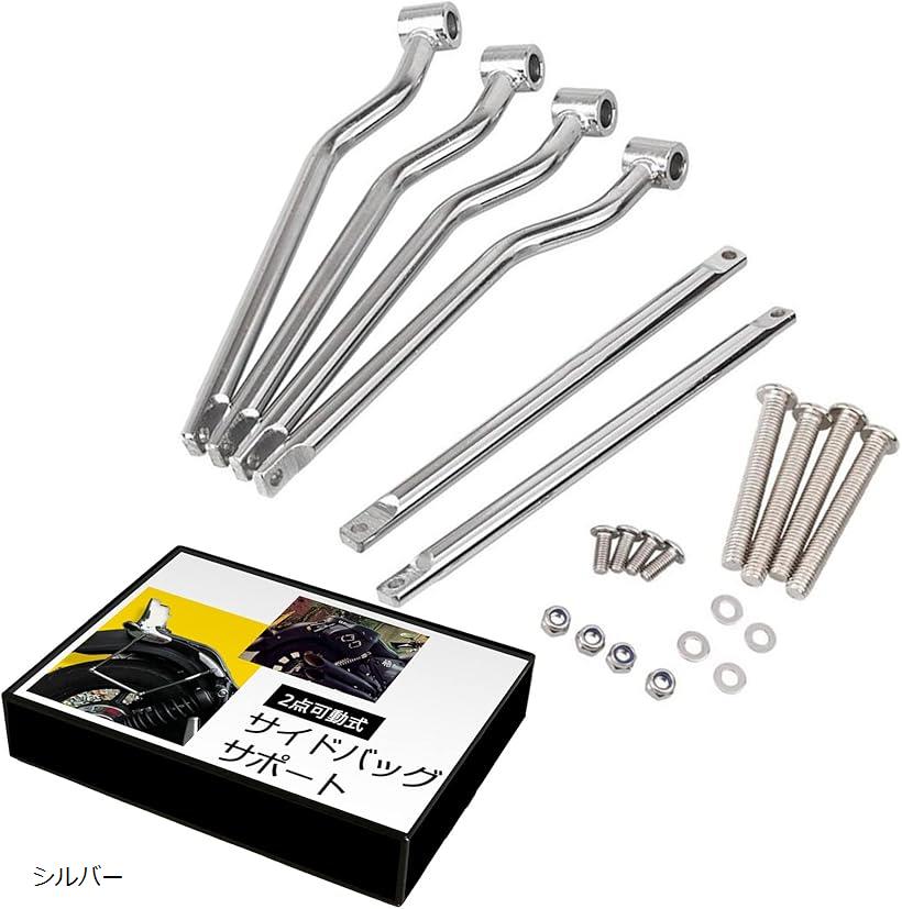 互換品 エスネット 汎用 リア サイド バッグ サポート 角度 調節 可能 ステー 左右 セット アメリカン バイク ツーリング クローム 荷台 (シルバー)