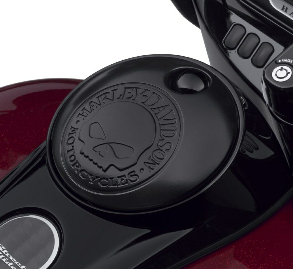 ウィリーG.が描いた有名なスカルをあしらったコレクションで、愛車をダークサイドにシフト。ブラックに染まり浮き彫りになったスカルと周囲を囲む「Harley-DavidsonMotorcycle」ロゴが威圧的な雰囲気を醸し出します。マットフィニッシュがグロスブラックやリンクルブラックによく似合います。標準装備のフュエルドアを簡単に取り換えられます。標準装備のマウンティングハードウェアとロックを再利用して取り付けます。’08以降エレクトラグライド、ストリートグライド、ウルトラリミテッド、ロードグライドおよびトライグライドモデルでセンターに給油口があるタンク装備車に適合。