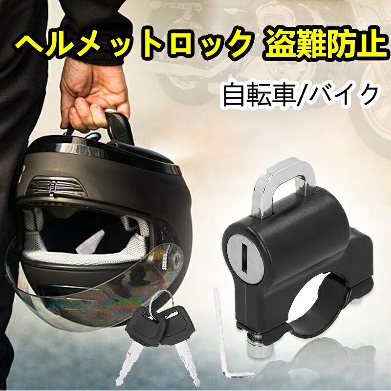 送料無料 ヘルメットホルダー ヘルメットロック バイク 自転車 オートバイ スクーター 汎用 盗難防止 防犯 鍵 スペアキー付き パイプ