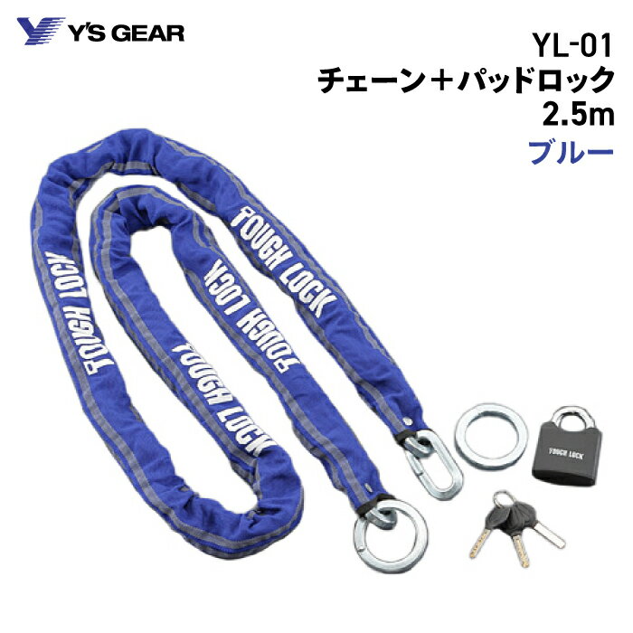 ワイズギア YL-01 チェーン + パッドロック 2.5m ブルー ヤマハ YAMAHA バイク 防犯