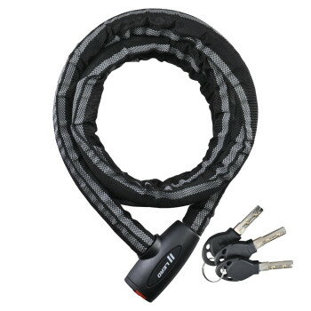 焼き入れ加工を施した角型チェーンを採用した高強度ダブルループチェーン。組み合わせて使える高自由度が魅力。南京錠と組み合わせればハイレベルのセキュリティーも可能。サイズ直径6×長さ1200mm(※直径はチェーンの太さです)個装サイズ:62×5×2.5cm重量約1150g個装重量:2500g生産国台湾多彩な施錠方法が叶うダブルループチェーン