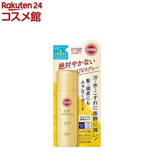コーセー サンカット パーフェクト UV スプレー SPF50+ PA++++ 大容量90g SUNCUT コスメポート KOSE コラーゲン ヒアルロン酸 スクワラン 植物エキス COSMEPORT 無香料 日焼け止め ユニセックス べたつかない さらさら 塗り直し お手軽 簡単 全肌質 シミ そばかす 日本製