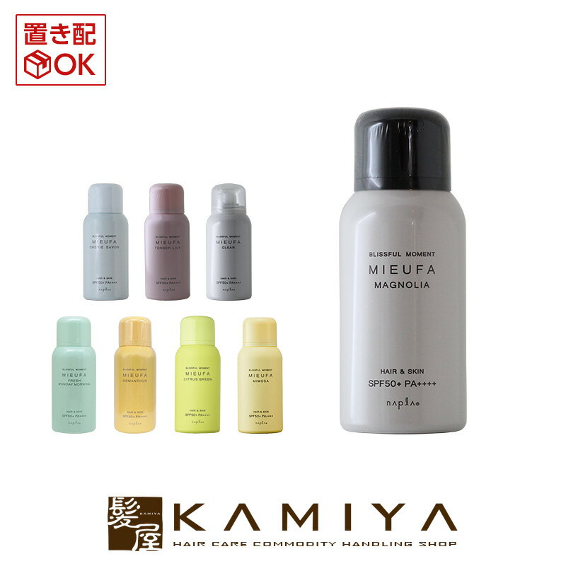 ナプラ mieufa ミーファ フレグランス uv スプレー クリア 80g 頭皮 日焼け止め スプレー 髪 日焼止め uvケア uvカット ヘアフレグランス 紫外線 uv対策 全身 エイジングケア 無香料 spf50 pa++++ サロン専売品 美容室 美容室専売 紫外線対策
