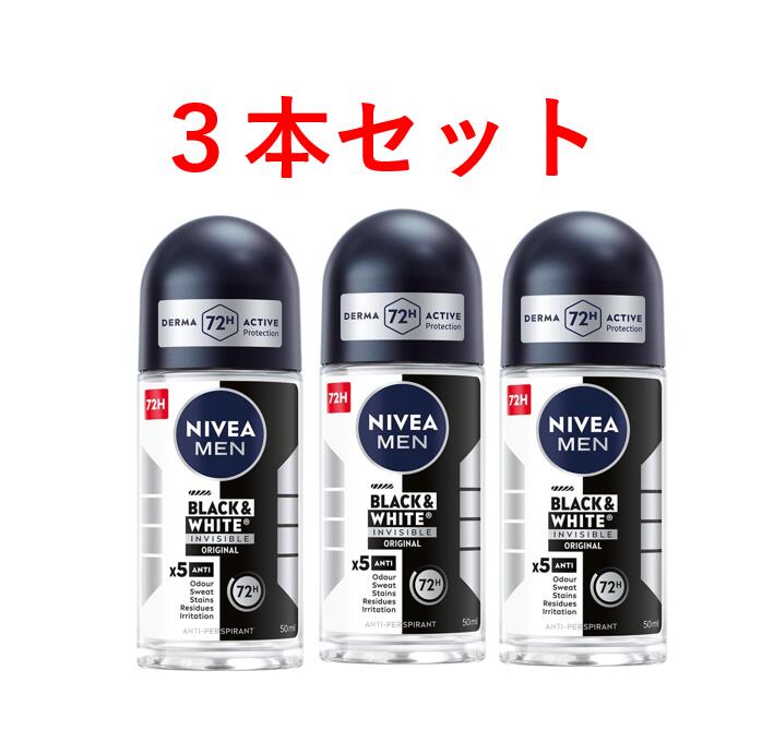 Nivea Men ニベアメン 男性用 制汗 デオドラント ロールオン Black&White Invisible Original 50ml×3個 まとめ買い