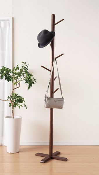 送料無料 木製ポールハンガーL ブラウン N-8286