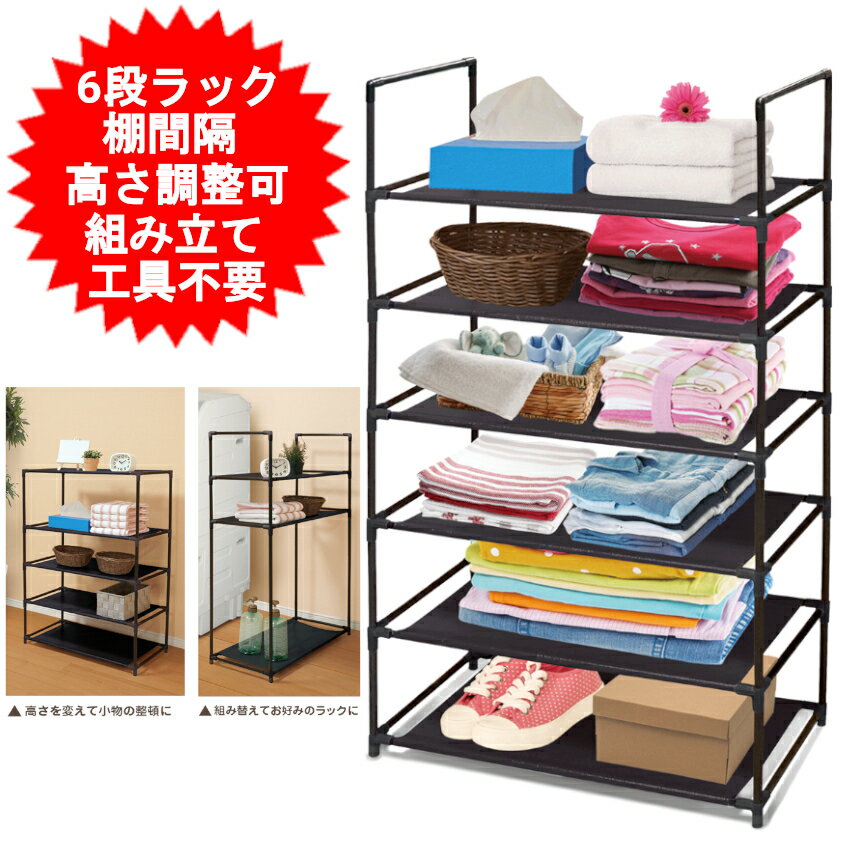 ラック メタルラック 棚 6段 幅57×奥行28×高さ105cm 1段 2段 3段 4段 5段 6段 にサイズ変更可 シューズラック 下駄箱 シンプル フリー ラック 収納 棚 シンプル 軽量 軽い スチール パイプラック 小物収納 スリム ブラック 組立式 リビング 子供部屋 寝室 玄関【送料無料】