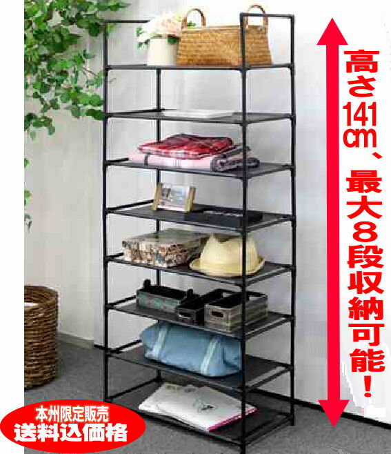 8段収納マルチラック スリッパラック・衣類ラックリビング・玄関・寝室でも幅広く使える収納棚【本州限定送料無料】(四国・九州・北海道には、下記送料を加算)