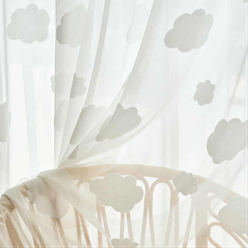 【1cm刻みのオーダー】レースカーテン 非遮光 北欧 刺繍 雲柄 ホワイト 可愛い おしゃれ かわいい 透け感 採光 ボイル 手作り UVカット シンプル 洗える 間仕切り ガーゼ 子供部屋 寝室 リビング 腰高窓 出窓 幅120 150 200 丈178 180 送料無料