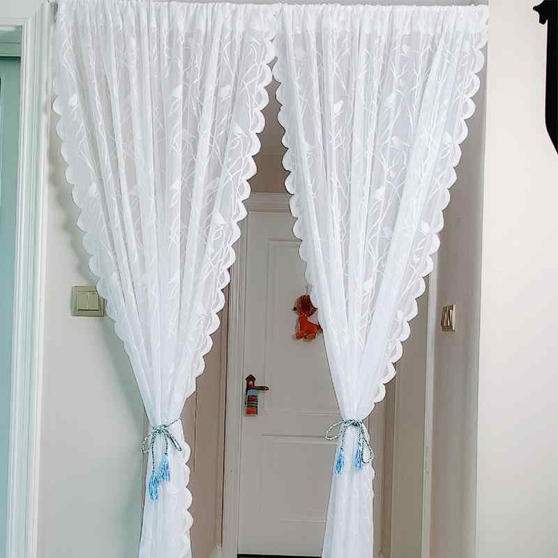 カーテン レース 刺繍 北欧風 フレンチ レトロ 宮廷 透光 窓辺 間仕切り ハーフ ドアカーテン 白 ポリエステル 装飾 リビング ベッドルーム 書斎 ダイニング 浴室 玄関 店舗