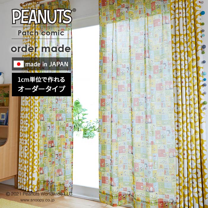 オーダーカーテン レースカーテン 北欧 PEANUTS ピーナッツ シアーカーテン Patch comic / パッチコミック 【ウォッシャブル/ミックス】