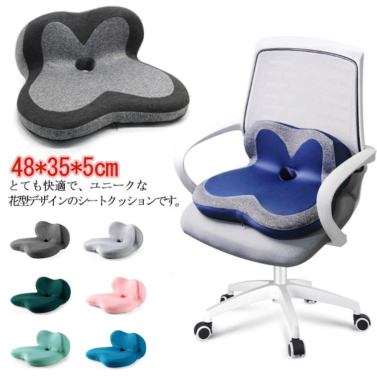 とても快適で、ユニークな花型デザインのシートクッションです。人間工学に基づいて設計された、おしりの痛みを気にせず、快適な座り心地を実現します。後端に高めたデザインであり、尾椎の圧力も深く吸収されて、体圧を分散して長時間座れも疲れないです。低反発クッションの高密度フォームが体圧を均一に分散され、チェアクッションの耐久性を高めています。カバーにはファスナー付きで、カバーを取り外して洗えるので、お手入れも簡単。毎日のデスクワークや長距離運転などが多い方、座り心地がよくなりたい方にオススメ。 サイズフリーサイズサイズについての説明サイズ:48*35*5cm素材カバーの素材:ポリエステル クッションの素材:低反発ウレタンフォーム色カラ-1 カラ-2 カラ-3 カラ-4 カラ-6 カラ-7 カラ-8備考 ●サイズ詳細等の測り方はスタッフ間で統一、徹底はしておりますが、実寸は商品によって若干の誤差(1cm〜3cm )がある場合がございますので、予めご了承ください。●製造ロットにより、細部形状の違いや、同色でも色味に多少の誤差が生じます。●パッケージは改良のため予告なく仕様を変更する場合があります。▼商品の色は、撮影時の光や、お客様のモニターの色具合などにより、実際の商品と異なる場合がございます。あらかじめ、ご了承ください。▼生地の特性上、やや匂いが強く感じられるものもございます。数日のご使用や陰干しなどで気になる匂いはほとんど感じられなくなります。▼同じ商品でも生産時期により形やサイズ、カラーに多少の誤差が生じる場合もございます。▼他店舗でも在庫を共有して販売をしている為、受注後欠品となる場合もございます。予め、ご了承お願い申し上げます。▼出荷前に全て検品を行っておりますが、万が一商品に不具合があった場合は、お問い合わせフォームまたはメールよりご連絡頂けます様お願い申し上げます。速やかに対応致しますのでご安心ください。