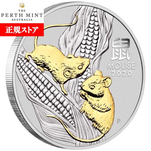 即納 2020 オーストラリア(パース) 干支:子(ネズミ)年 銀貨 1オンス 部分金メッキ 箱とクリアケース付き【特選】