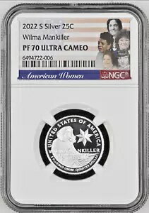 2022-S シルバー ワシントン クォーター - ウィルマ・マンキラー - PCGS PR70DCAM - FS