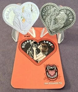 プルーフ&アンティーク KILLER LOVE ハート 1オンス .999 シルバー トーミント / HFS COA 付き