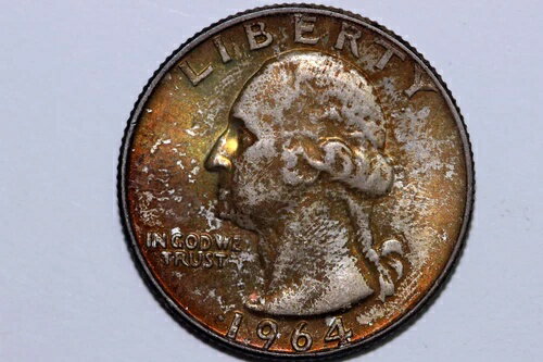 1964-D ワシントン 90% シルバー クォーター キラートーン ミントステート (WQX290)