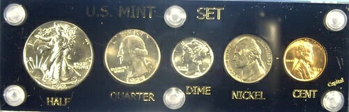 1939年 P 米国造幣局セット ジェム BU コイン 赤いキャピタルホルダー入り 光沢が滴るコイン