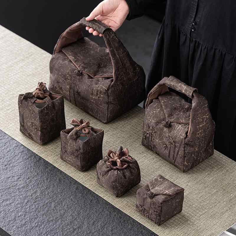茶器収納袋 玄霧 巾着袋 旅行用 携帯用 茶器セット 収納ポーチ 主人杯 快客杯 対応 布製 コンパクト 大容量 中国風 手提げ ハンドバッグ(x2)