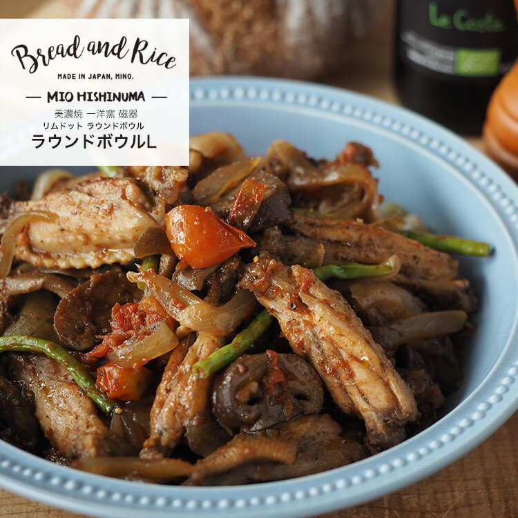 Bread and Rice (パンとごはんと...)美濃焼 リムドットラウンドボウルL直径22cm 高さ4.5cm(Bread&Rice 菱沼未央さん 丸深皿 深皿 中皿 大皿 汁物 煮物 陶器 CHIPS 引出物 贈り物 ギフト)