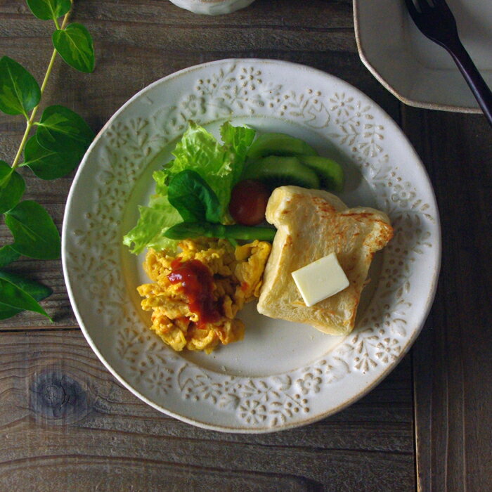 【SALE】Bouquet(ブーケ)SSDDシリーズ 【ホワイト】 益子焼 中皿 プレート 丸皿 花 Same Size and Different Design おしゃれ 花模様 シンプル 植物 和食器(食洗機対応 電子レンジ使用可)ギフト プレゼント お家カフェ