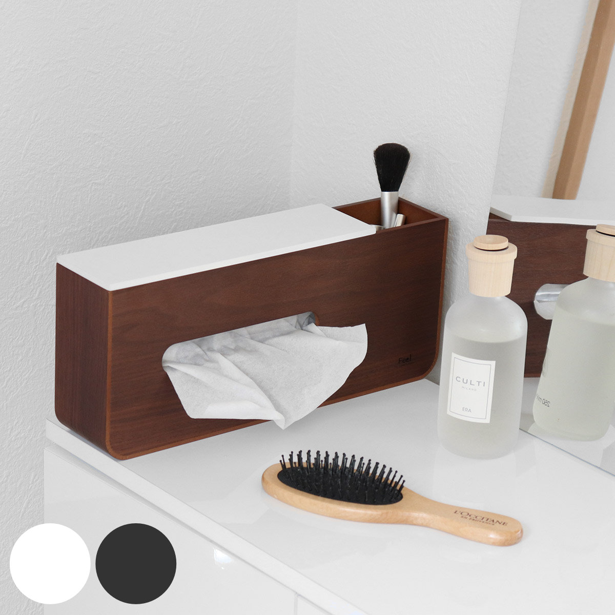 ティッシュと小物をまとめて収納できて便利なマルチ収納 ティッシュケースは底上げしてくれるバネがついているので 残量が少なくなっても取り出しやすくて快適 10.5×20.5cmまでのソフトケースティッシュが収納可能です。 サイドポケットは仕切りが取り外し可能なので収納したいアイテムにあわせて調整できます。 ウッド製の蓋がインテリアのアクセントになり、ナチュラルで優しい雰囲気をプラスしてくれます。 リビングやキッチンだけでなく、洗面やコスメ、オフィス用品の収納にも大活躍します。