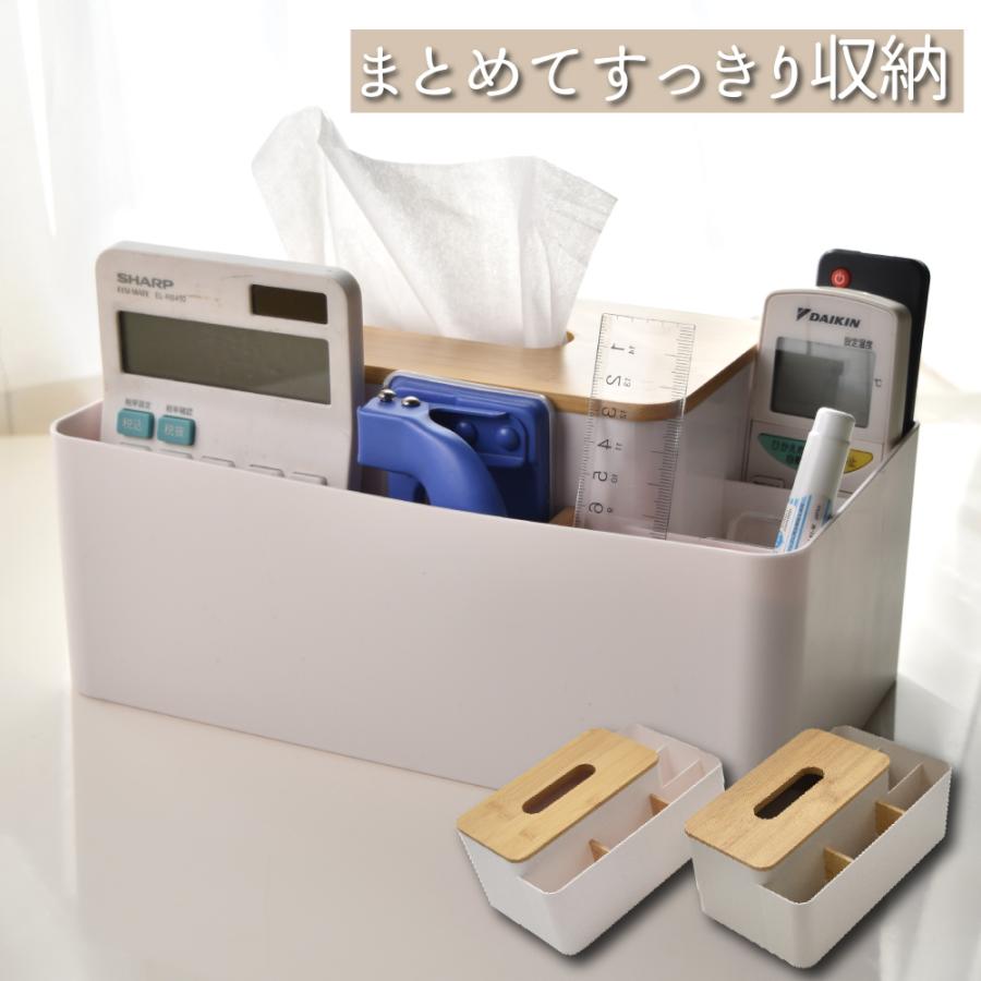 送料無料 ティッシュケース ティッシュボックス 小物入れ リモコンラック 木製 卓上 仕切り 化粧品収納 多機能 大容量 シンプル インテリア
