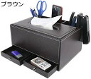 ティッシュケース ティッシュボックス 引き出し付き 収納ボックス 収納ケース 小物入れ 整理ボックス PU オフィス用品 リビング用品 多機能 インテリア 雑貨 (ブラウン)