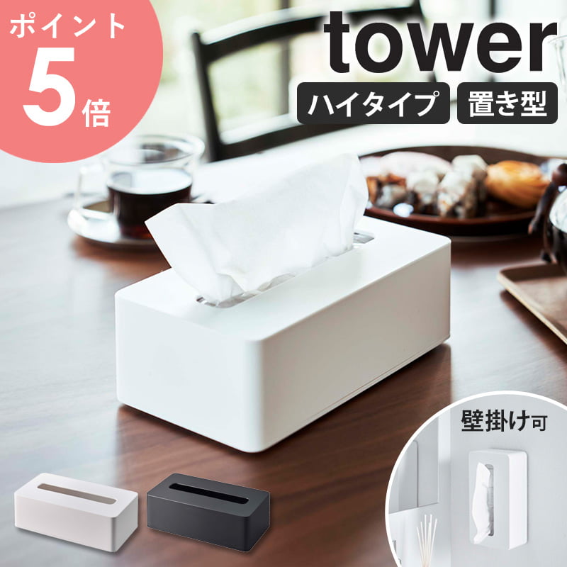 コンパクトティッシュケース ハイタイプ タワー tower 山崎実業 ティッシュボックス ティッシュカバー 卓上 壁掛け ソフトパック 袋入りティッシュ 収納 おしゃれ スリム キッチン 台所 リビング サニタリー 洗面所 シンプル ホワイト ブラック yamazaki 5804 5805 arco