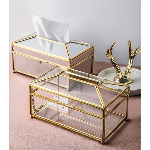 アンティーク調 ブラス ガラス/ミラー テッィシュ ケース