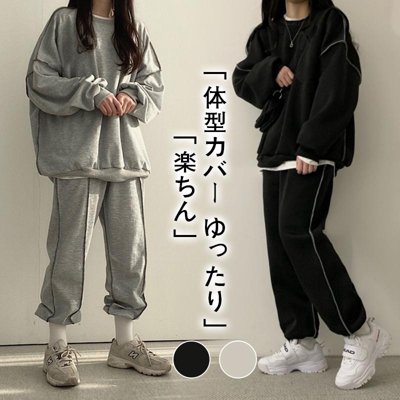 ゆった 長ズボン ルームウェア トレーニングウェアセット 綿 長袖 レディース l 上下セット セット セットアップ かわいらしい
