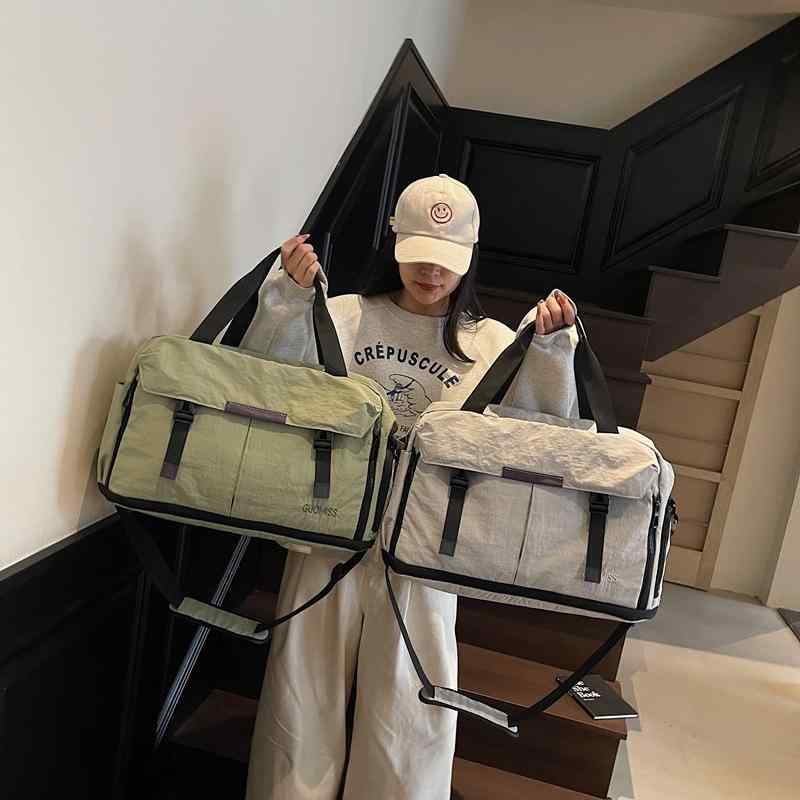 旅行バッグ 大容量 多機能 手提げ ダブルショルダー 短期旅行 荷物収納袋 普段使い ジムバッグ 女性用 スポーツ 運動 トレーニング 20-35L ナイロン 通気性 ストリート スタイル ブラック ライトグレー