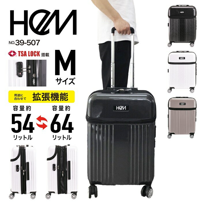 【5H限定豪華プレゼント|11/21 19時~】特典付き HeM ヘム スーツケース Mサイズ 54L 64L フロントオープン トップオープン 前開き 上開き 軽量 拡張機能付き 39-507 キャリーケース キャリーバッグ