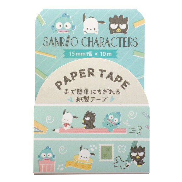 サンリオキャラクターズ サンリオ文具時間 ペーパーテープ ブルー ポチャッコ ハンギョドン バッドばつ丸 sanrio マスキングテープ 代引不可商品