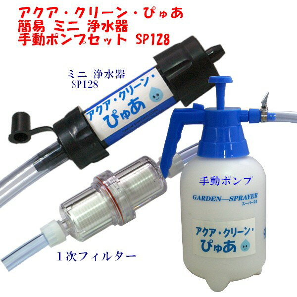 アクア・クリーン・ぴゅあ 手動 ポンプ セット 簡易 浄水器 緊急時 飲料水製造 非常時 キャンプ 防災グッズ ソーヤーミニ SP128 タイプ