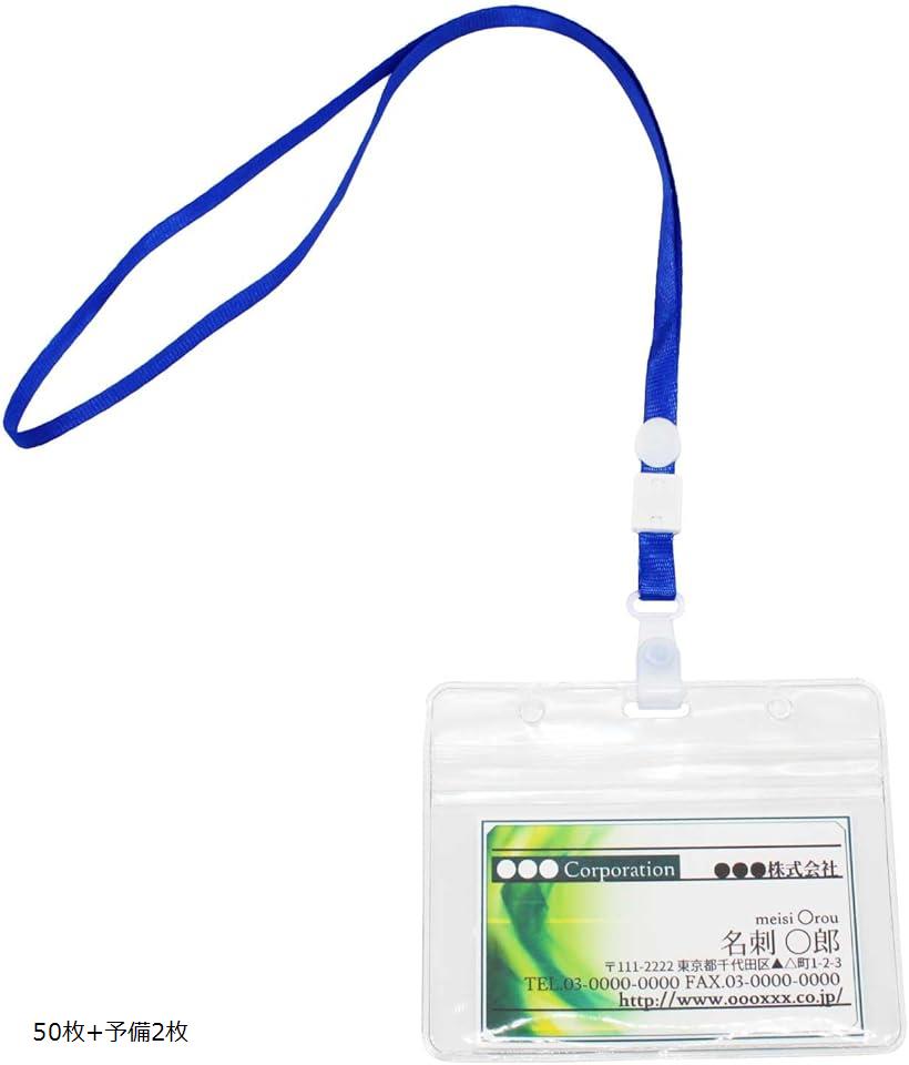 【楽天ランキング1位入賞】ネームホルダー ネックストラップ 名札ケース 首下げ チャック式 防水 名刺 カード 首掛け 予備2枚付 50枚セット (50枚+予備2枚, 50枚+予備2枚)