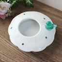 【アウトレット】グリーンガラスストーン バード&フラワー 小物入れ / ホワイト 白 緑 花模様 フリル かわいい 鳥 芳香剤入れ フラワーアレンジメント ジュエリーケース ジュエリーボックス アクセサリー