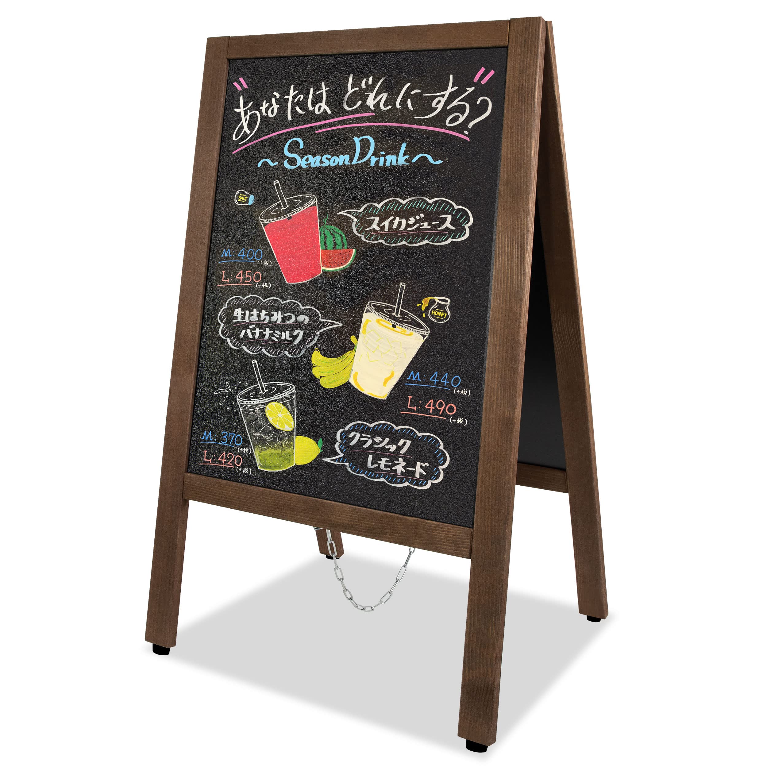 【まとめ買いで最大1000円OFFクーポン!】A型 看板 両面ブラックボード a型 立て看板 スタンド ボード メニュースタンド 100%木製 黒板 お店の看板 折りたたみ式 案内板 ウッドボード 転倒防止ボード 屋内外対応 Aタイプ ウェルカムボード 店舗用看板 (木製,両面,ブラウン