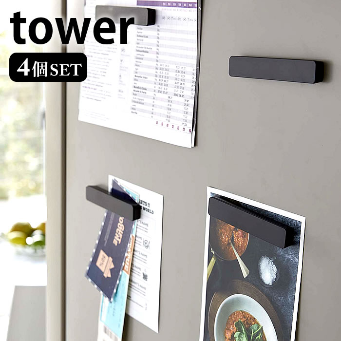 【 マグネットバー タワー 4個組 】 山崎実業 タワー tower クッチーナ 送料無料 タワー マグネット 冷蔵庫 マグネット シート クリップ マグネット 強力 バスルーム マグネット 磁石 強力 まぐねっと 収納 マグネット 冷蔵庫の かわいい メモ メール便OK