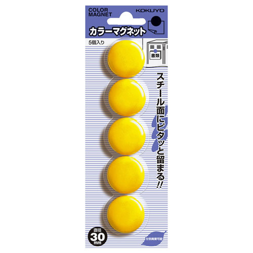 コクヨ カラーマグネット マク-30NY(5入)黄【ホワイトボード】【カラーマグネット】