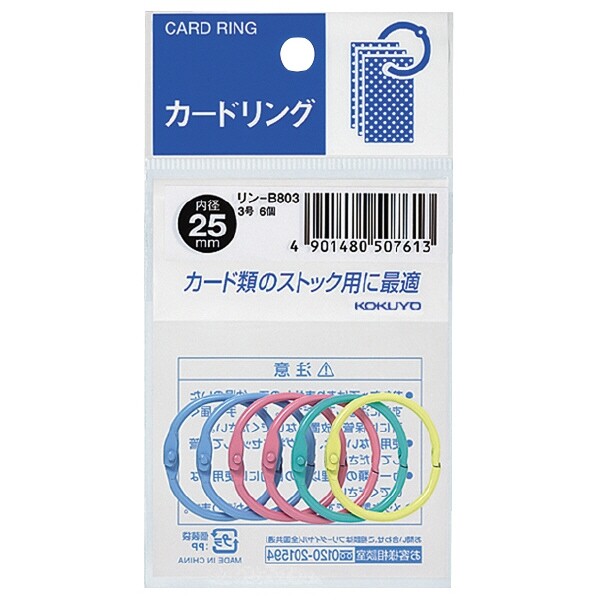 商品名コクヨ カードリング パック入り 3号X6個入 パステル色品番リン-B803当店では かわいい おしゃれな 文房具を中心にセレクト☆彡 人気のキャラクターグッズも豊富! 文具・雑貨・おもちゃ・鞄・スポーツ用品の総合バラエティショップです。ポスト投函するメール便対応や送料無料の商品も多数!この商品の基準数は1個につき 10 です。※ご注文を確定される前にメール便で配送できる個数をご確認ください。基準数オーバーの場合には、配送形式の変更をお願いするメールをお送りしています。変更が完了してから改めて在庫確保しますので、欠品になったり、完売などの理由によりキャンセルさせていただく場合があります。※メール便は、配達の日時指定に対応しておりません。