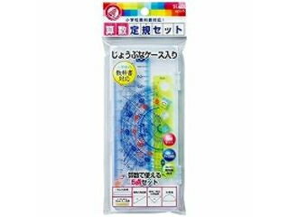 算数で使える定規5点セット!じょうぶなケース入り。■内容:15cm定規(メモリ寸法15cm)、直角三角定規(メモリ寸法10cm)、直角二等辺三角定規(メモリ寸法10cm)、分度器(直径9cm)、ミニ定規(メモリ寸法9cm)■ケース付 商品情報 入数1個 AP01A