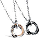 ペアネックレス シンプル ネックレス メンズ リングネックレス リング ペア ステンレス 友達 セット ペア おそろい 金属アレルギー 対応 プレゼント シルバー 3 連リング ジルコニア あずきチェーン チェーン 黒 ローズゴールド 送料無料