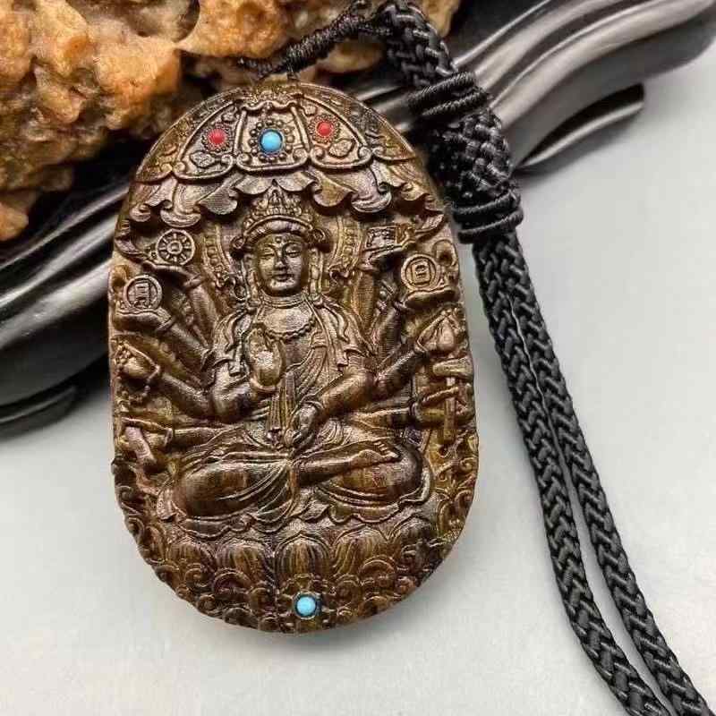 ネックレス 観音 ペンダント 男女兼用 干支 木製 ハンドメイド 開運 仏教 風水 アクセサリー エスニック ユニーク ユニセックス プレゼント