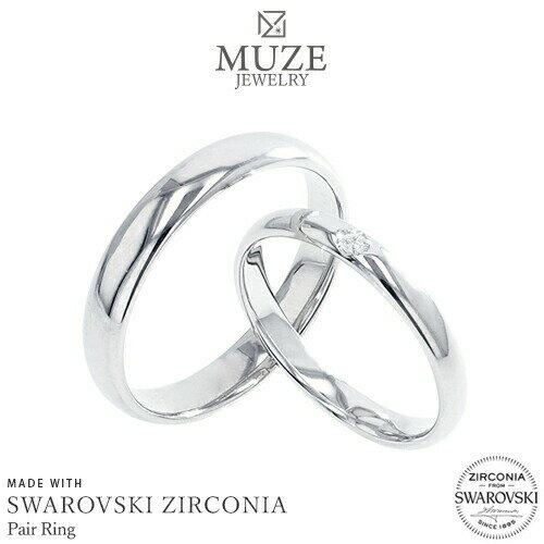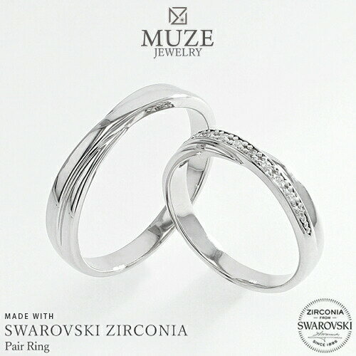 \ブラックフライデー15%OFFクーポン&P5倍/ MUZE JEWELRY リング 指輪 ペアリング スワロフスキージルコニア使用 結婚指輪 マリッジリング シルバー925 プラチナ仕上げ カップル ペア SV925 プロポーズ 記念 made in japan 刻印 名入れ