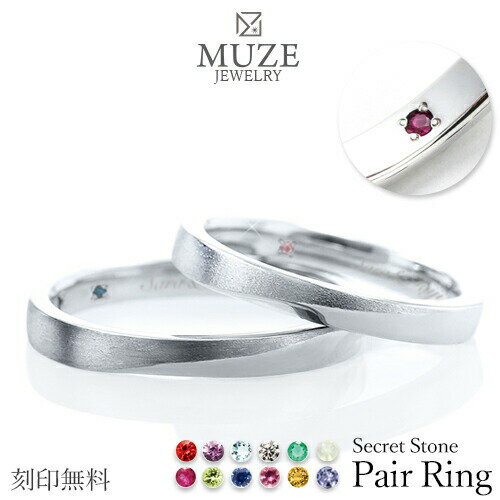 \ブラックフライデー15%OFFクーポン&P5倍/ MUZE JEWELRY シークレットストーン ペアリング 結婚指輪 ツヤ消し加工 マリッジリング 指輪 シルバー925プラチナ仕上げ カップル リング ペア プラチナ仕上げ SV925 プロポーズ サプライズ 記念 made in japan 刻印 名入れ