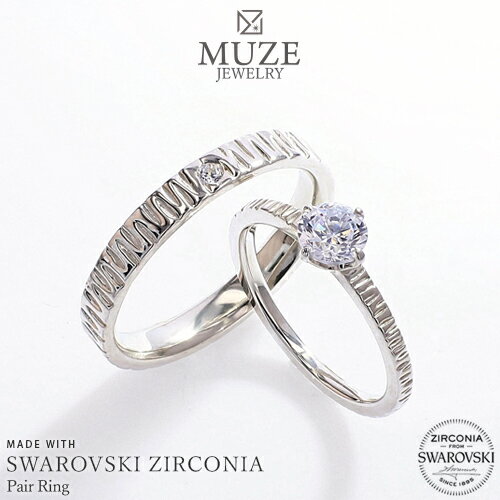 \ブラックフライデー15%OFFクーポン&P5倍/ MUZE JEWELRY リング スワロフスキージルコニア使用 ペアリング 結婚指輪 マリッジリング 指輪 プラチナ仕上げ カップル ペア SV925 made in japan 刻印 名入れ