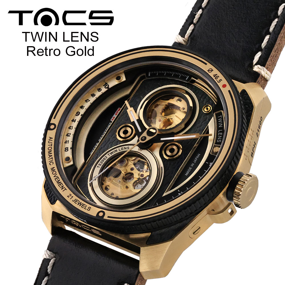 タックス 腕時計 ビンテージ レンズ オートマチック2 替えベルト付き 限定モデル TACS 時計 VINTAGE LENS AUTOMATICII メンズ ブラック ゴールド TS1803JP 人気 ブランド 機械式 自動巻き 個性的 おしゃれ カメラ クリスマス ギフト