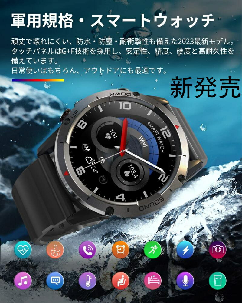 ITEM INFORMATION商品名軍用規格 スマートウォッチ 日本製センサー1.85インチ 心拍数 24時間健康管理 Bluetooth通話機能付き android対応 iPhone対応メッセージ通知 Smart Watch活動量計 歩数計 腕時計 ウォッチ翌日メンズ簡単操作多機能 Line カメラ遠隔操作 父の日誕生日ギフト商品番号s59商品詳細【商品説明】【2024年新開発軍用規格&1.85インチ大画面スマートウォッチ】先端のBluetooth5.3が搭載され、スピーディーな転送速度で通信範囲はより広めに。接続の安定性も大幅に向上されました。スマートウォッチはスピーカー&高性能マイクが内蔵され、携帯電話を出さなくても、通話ができます。立体音質であなたに究極の体験を与えます。携帯電話に着信が来た時に、ウォッチは振動しながら音でお知らせします。ウォッチの画面に相手の名前または電話番号が表示します。専用アプリと接続したらキーパットで電話番号をダイヤルすれば電話をかけます。また専用アプリに連絡先を追加すると、通話機能付きスマートウォッチで追加したリストを表示され、リストから電話もかけます。通話記録を保存することもできます。電話をポケットやバッグに入れたままでもBluetooth通話可能。また、このスマートウオッチで携帯電話の音楽を再生できます。 曲送り曲戻し一時停止、音量調整等の操作もできます。(ご注意:Bluetooth通話と音楽再生機能を利用する場合、「X10」 bluetoothペアリング接続が必要です。)【450mAh長持ちバッテリー&110種類運動モード&IP68防水】このランニングウォッチは450mahの大容量バッテリーを内蔵し、約2時間のフルー充電で10-12日使用可能です。頻繁に充電する手間がは省けます。外出や出張の際、バッテリー不足の心配はありません。ランニング、ウオーキング、サイクリングなど110種類スポーツモード搭載され、アプリと接続すれば、運動距離、時間などデータの計測が可能。毎日歩数目標設定可能、オフィス仕事や在宅勤務など必要な座りがち注意、水飲み通知機能も付きます、より良い運動習慣や生活習慣が自然に身に着けます。IP68級の防水及び防塵性能を持っており、汗、雨、水しぶきに対応しています。日常生活の手洗いや洗顔の際も取り外す必要がありません。【便利な通知機能&文字盤自由設定&多言語設定可能&AI音声アシスタント】すまーとウォッチは、Line、Twitter、Ins、Facebook、Instagram、着信などの通知は、全部バイブレーションで通知されます。一切の大事な連絡を絶対に見逃しません。また、メッセージ内容や相手の名前または対応するアプリのアイコンも表示されます。独自の時計のスタイルの文字盤、専用アプリには200種類以上の文字盤を自由に切り替えることができ、お好みの写真を文字盤として使用することも可能です。毎日のお気持ちによって、文字盤スタイルを取り替えましょう。専用アプリのその他に沢山の国の言語を設定できます。このスマート時計は業界最新の音声アシスタント機能付きで、音声アシスタントに話しかけるだけで音楽をかけてくれたり、アラームを設定してくれたり、スマートフォンのSiriを呼び出して、ニュースにアクセスする、天気を確認する、電話かけるなど操作できます。【注意事項】撮影の為、画質等の関係上、色などが実際の商品と若干違ってしまうこともあるかもしれませんがご理解のほどご入札ください。予めご了承ください。追加注意事項1.ベンゼンやシンナーなどの化学薬品に触れないでください。2.強い磁場に近づかないでください。3.直射日光暖房器具 などの熱が直接あたる場所や、高温多湿の場所での使用は避けてください。4.自分で分解、修理、改造しないでください。5.入浴中は着用しないでください。「温度は45℃をお超えることはできません。」製造時期によりデザインや仕様に若干の変更がある場合がございます。予めご了承ください。本機を利用したことによる、直接もしくは間接的に生じた損害、破損について当店は一切の責任を負いません。メーカー希望小売価格はメーカー商品タグに基づいて掲載していますITEM INFORMATION商品名軍用規格 スマートウォッチ 日本製センサー1.85インチ 心拍数 24時間健康管理 Bluetooth通話機能付き android対応 iPhone対応メッセージ通知 Smart Watch活動量計 歩数計 腕時計 ウォッチ翌日メンズ簡単操作多機能 Line カメラ遠隔操作 父の日誕生日ギフト商品番号s59商品詳細【商品説明】【2024年新開発軍用規格&1.85インチ大画面スマートウォッチ】先端のBluetooth5.3が搭載され、スピーディーな転送速度で通信範囲はより広めに。接続の安定性も大幅に向上されました。スマートウォッチはスピーカー&高性能マイクが内蔵され、携帯電話を出さなくても、通話ができます。立体音質であなたに究極の体験を与えます。携帯電話に着信が来た時に、ウォッチは振動しながら音でお知らせします。ウォッチの画面に相手の名前または電話番号が表示します。専用アプリと接続したらキーパットで電話番号をダイヤルすれば電話をかけ
