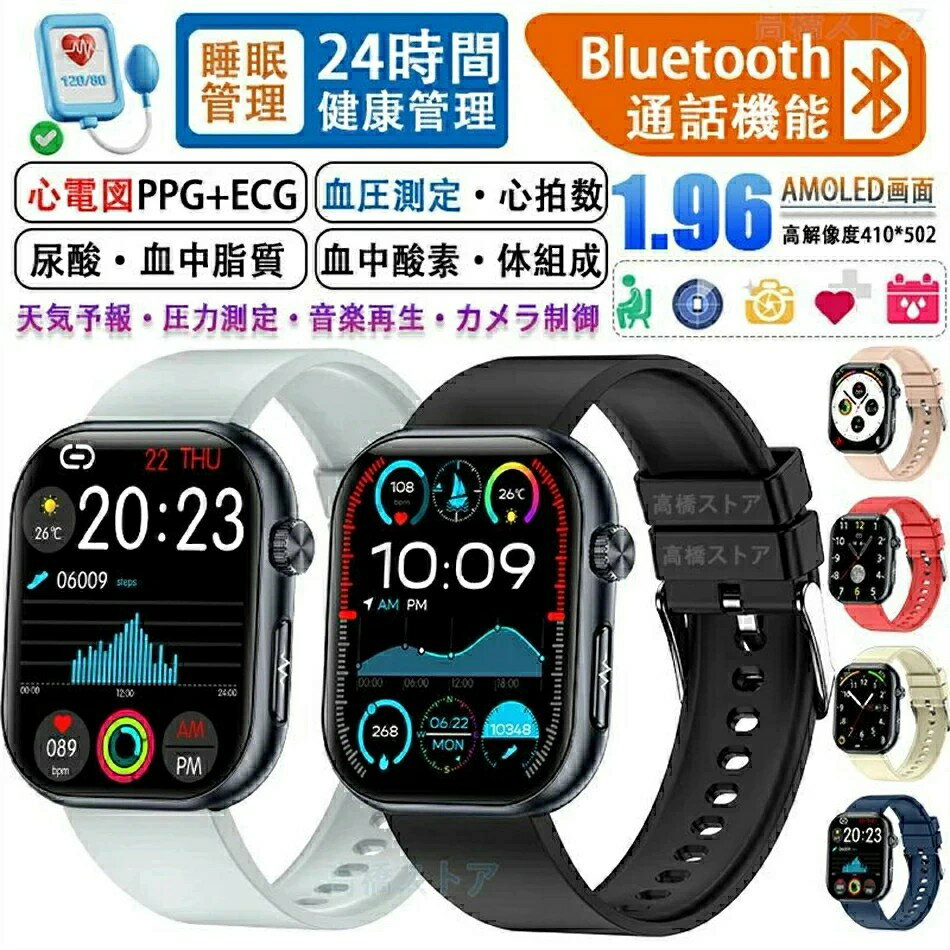 【2025最新版 工場直営】スマートウォッチ 血中脂質 尿酸 血圧測定 ECG心電図 体温 心拍数 日本製センサー 着信通知 血中酸素 呼吸率 睡眠管理 音楽 カメラ制御 SOS