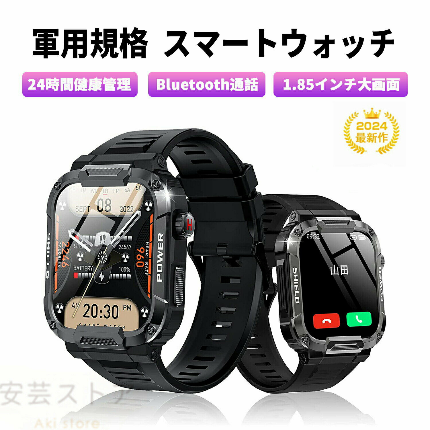 軍用規格 スマートウォッチ 日本製センサー1.85インチ 心拍数 24時間健康管理 Bluetooth通話機能付き android対応 iPhone対応メッセージ通知 Smart Watch活動量計 歩数計 腕時計 ウォッチ翌日メンズ簡単操作多機能 Line カメラ遠隔操作 父の日誕生日ギフト